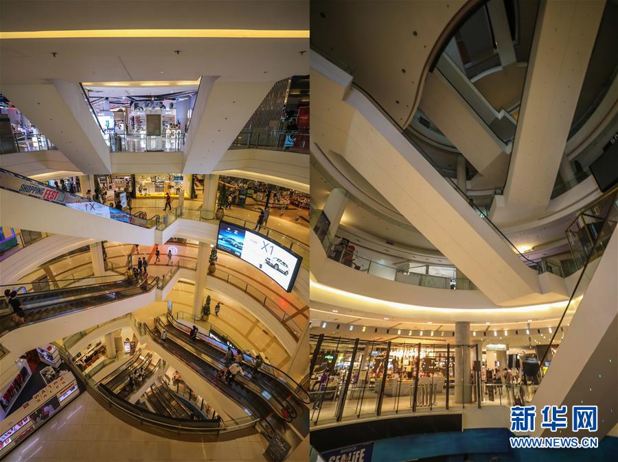 這是3月21日拍攝的泰國曼谷暹羅百麗宮商場(左圖)和3月22日拍攝的停止?fàn)I業(yè)的商場的對比圖。新華社記者張可任攝