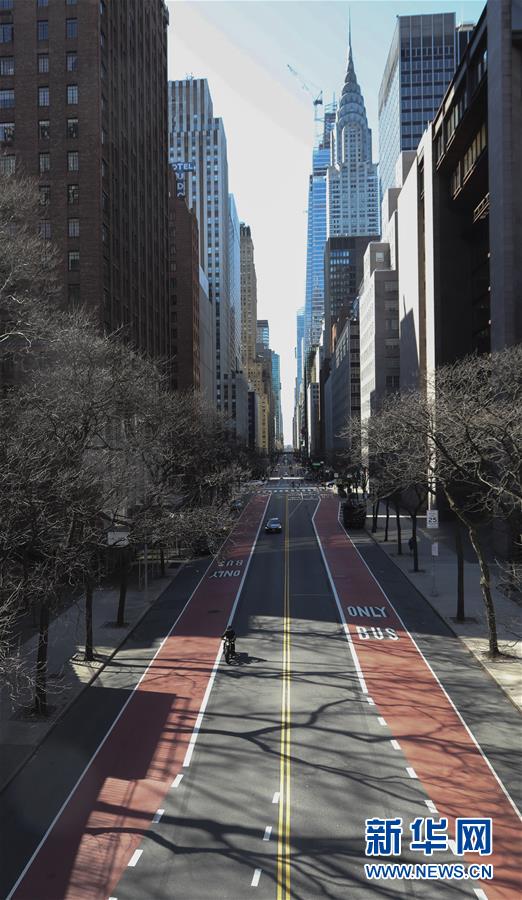 3月21日,在美國紐約,以往繁忙的街道上車輛寥寥。美國紐約州、伊利諾伊州、康涅狄格州20日發(fā)布針對本州居民的“居家令”,以遏制新冠病毒傳播。這些“居家令”涵蓋紐約、洛杉磯、芝加哥等大城市,影響數(shù)千萬人。白宮20日發(fā)表聲明說,總統(tǒng)特朗普已宣布紐約州出現(xiàn)“重大災難”,命令聯(lián)邦政府支援該州抗擊新冠肺炎疫情。新華社記者王迎攝