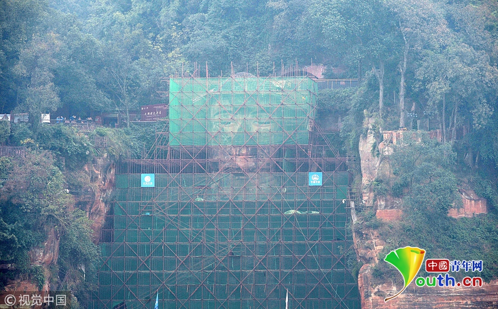 12月10日前后已逐步遮蔽大佛頭部,對頭面部進(jìn)行勘測;12月底將開始拆除頭部腳手架,保證2019年元旦節(jié)之前,先露出佛頭,供游客觀賞。