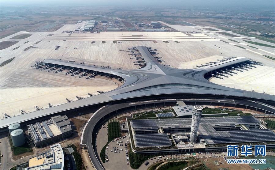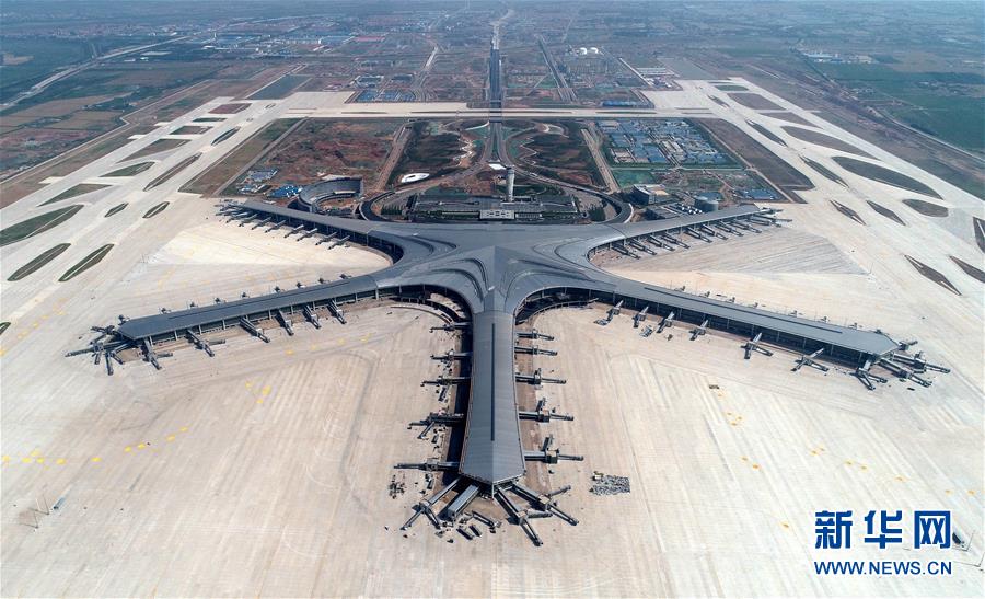 2019年6月12日無人機(jī)拍攝的建設(shè)中的青島膠東國(guó)際機(jī)場(chǎng)。新華社記者李紫恒攝