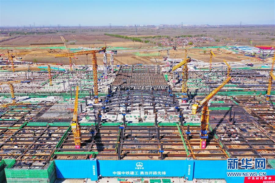 這是3月27日拍攝的京雄城際鐵路雄安站施工現(xiàn)場(無人機(jī)照片)。新華社記者楊世堯攝