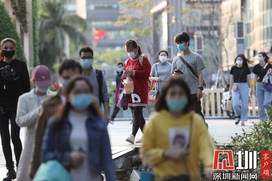 見圳客戶端·深圳新聞網(wǎng)2020年3月19日訊 下班時間,深圳地鐵一號線深大站A3出口外,下班后的市民在站外排大排長龍,依次有序進入地鐵站乘坐列車回家。