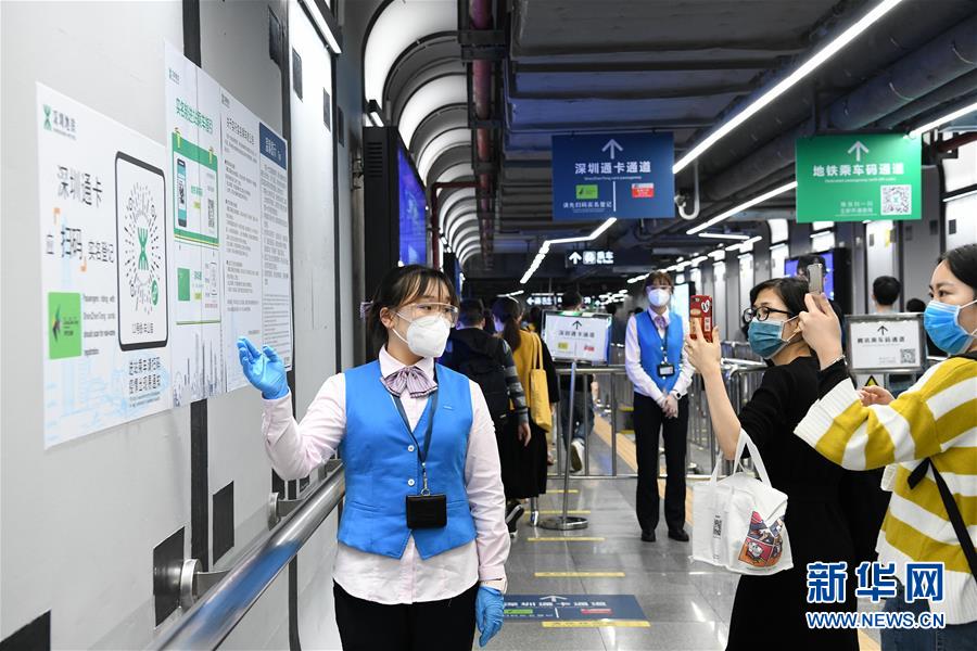 3月18日晚高峰時(shí)段,在深圳地鐵車(chē)公廟站,乘客掃描二維碼進(jìn)行實(shí)名登記。新華社記者梁旭攝