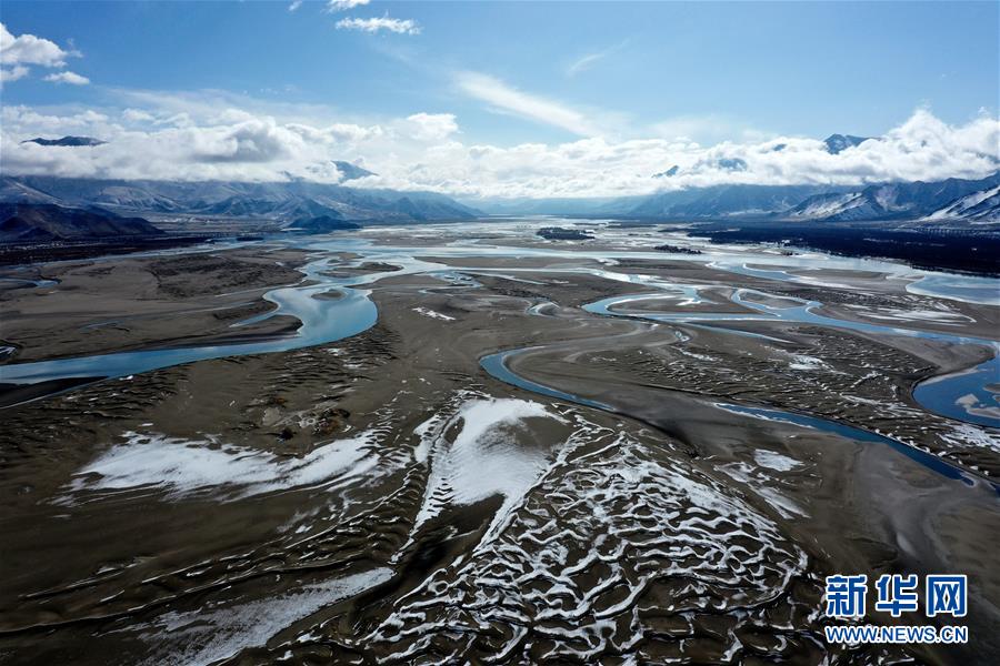 這是3月24日拍攝的雅魯藏布江雪景(無人機(jī)照片)。新華社記者晉美多吉攝