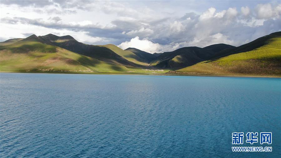 西藏山南市境內(nèi)的羊卓雍錯(7月22日無人機(jī)拍攝)。新華社記者晉美多吉攝