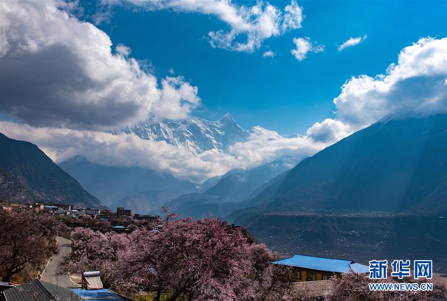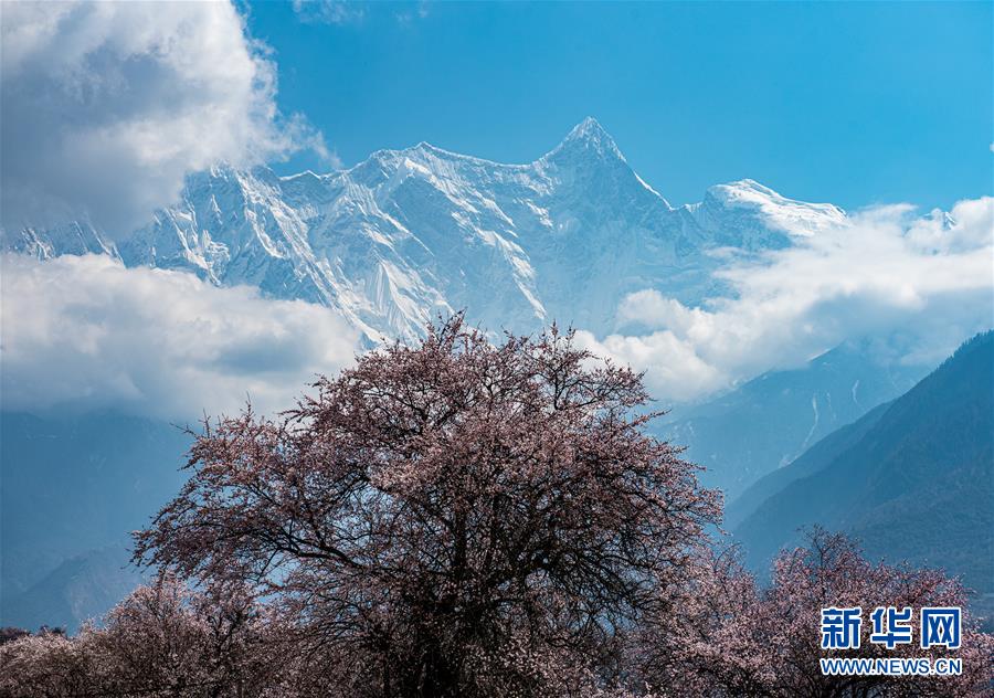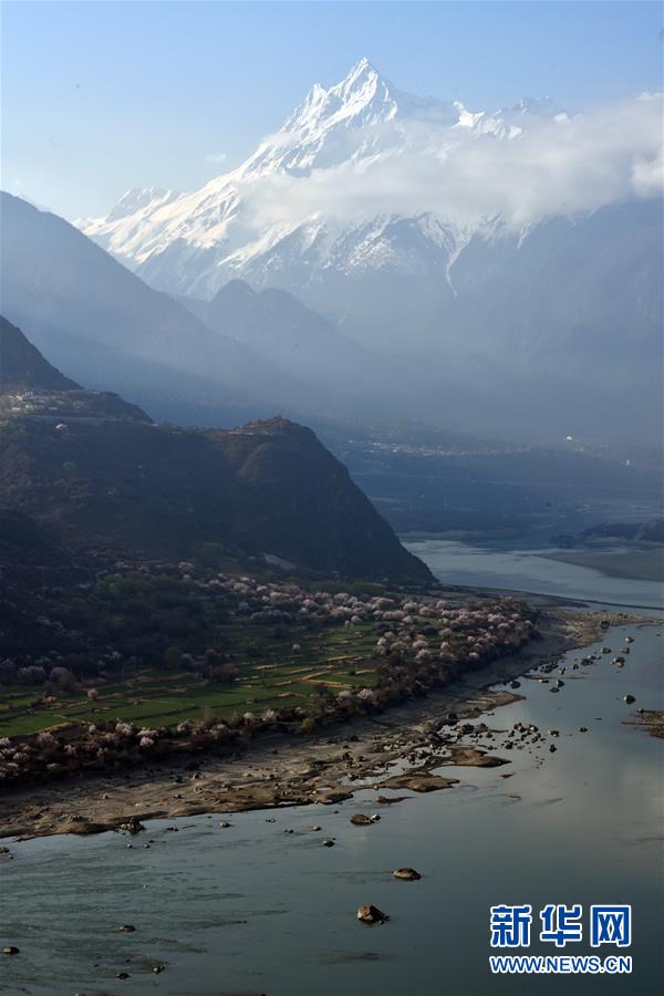 南迦巴瓦峰下盛開的桃花(4月1日攝)。新華社記者黃豁攝