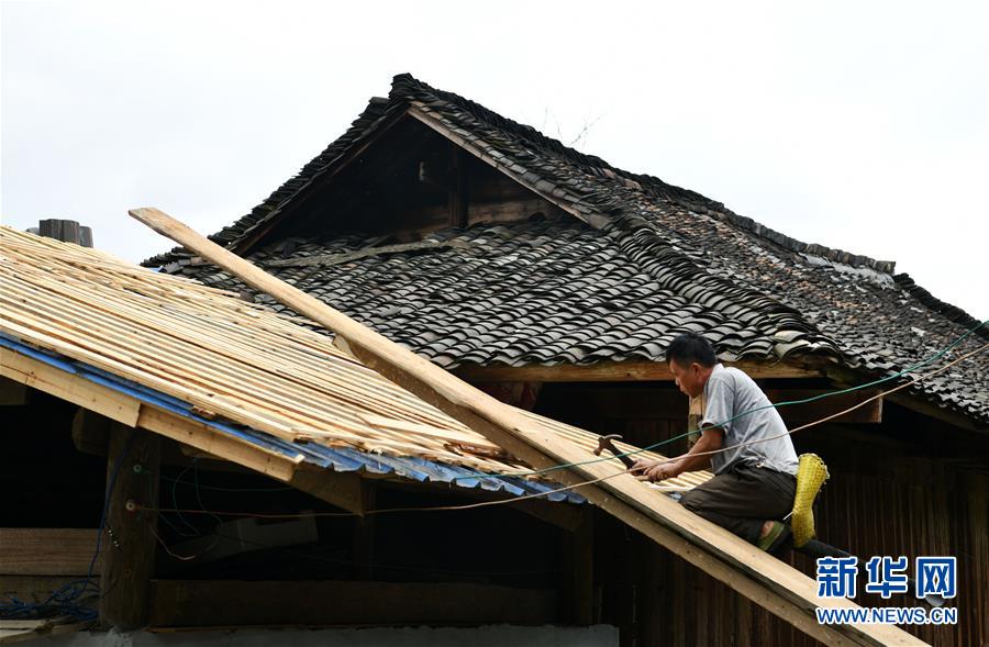 貴州省從江縣加榜鄉(xiāng)黨扭村村民在整治吊腳樓風(fēng)貌(4月16日攝)。貴州省從江縣把人居環(huán)境整治作為脫貧攻堅(jiān)工作的一項(xiàng)重要舉措來抓,對鄉(xiāng)村規(guī)劃范圍內(nèi)長期無人居住的危房、廢棄禾倉、棚圈、柴草房和房前屋后的殘?jiān)珨啾诘冗M(jìn)行清理整治,進(jìn)行復(fù)墾復(fù)綠,同時(shí)開展農(nóng)戶衛(wèi)生和村寨環(huán)境整治,做到鄉(xiāng)村環(huán)境干凈、衛(wèi)生、整潔,扮靚美麗鄉(xiāng)村。新華社記者楊文斌攝