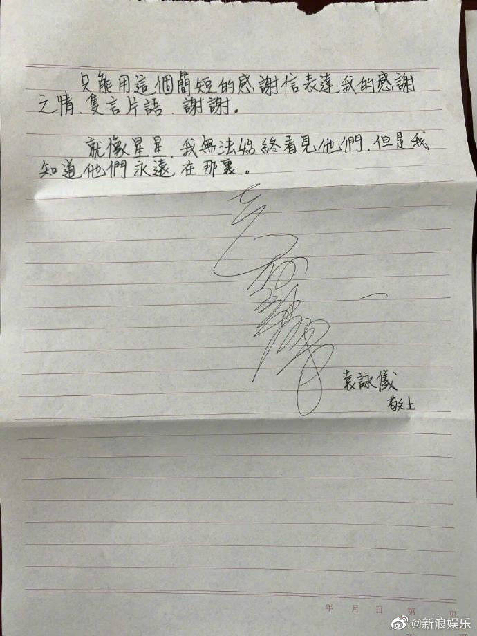 她在信中說,出發(fā)前,她和家人十分擔(dān)心,不知如何過關(guān)、坐車、去酒店,但進(jìn)入深圳灣口岸后,她所有的擔(dān)心都沒有了,因為有了大家的專業(yè)和負(fù)責(zé),各個環(huán)節(jié)的嚴(yán)謹(jǐn)和有序,工作人員的耐心和細(xì)致,她在半小時內(nèi)就完成所有流程,坐上了去酒店的巴士。信里,袁詠儀對政府工作人員表示了感謝,“就像星星,我無法始終看見他們,但是我知道他們永遠(yuǎn)在那里?!?/p>