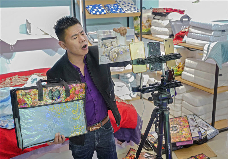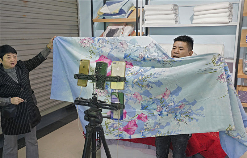 一場床上用品的直播銷售正在進(jìn)行中。