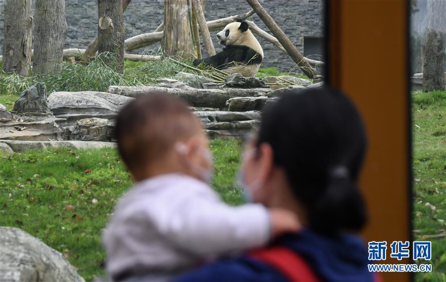 4月22日,大熊貓迎來參觀的游客。當(dāng)日,在嚴(yán)格落實(shí)疫情防控措施的前提下,武漢動物園有序恢復(fù)開放。新華社記者程敏攝