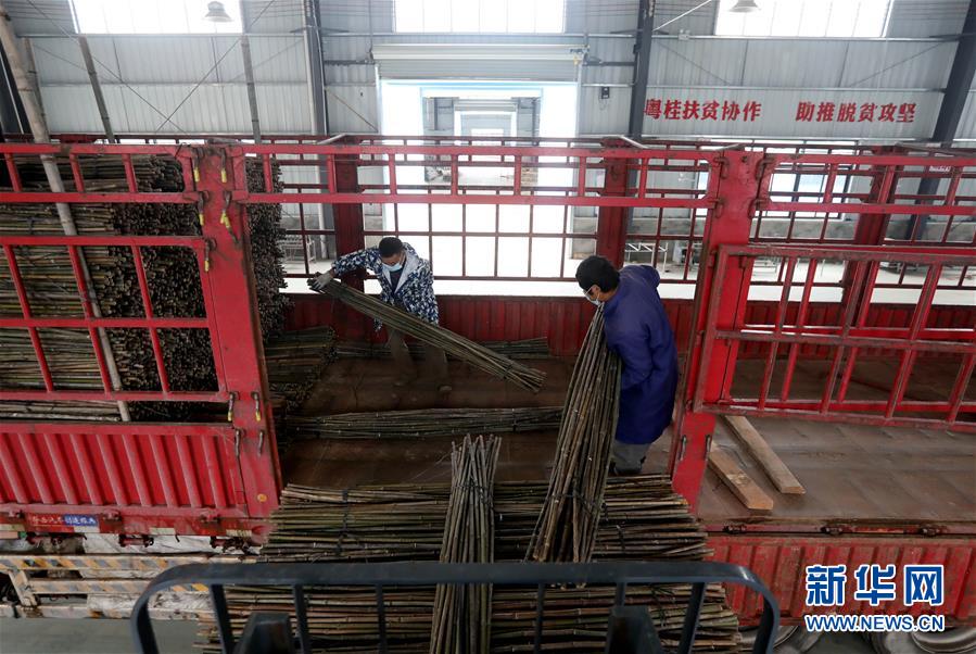 4月24日,在廣西融安縣農(nóng)產(chǎn)品加工暨粵桂扶貧協(xié)作產(chǎn)業(yè)園的一家竹制品外貿(mào)企業(yè),工人在裝載竹制品。日前,廣西柳州市融安縣農(nóng)產(chǎn)品加工暨粵桂扶貧協(xié)作產(chǎn)業(yè)園內(nèi)的企業(yè)已全部復(fù)工復(fù)產(chǎn),園區(qū)竹制品外貿(mào)企業(yè)正在加緊生產(chǎn),在完成外貿(mào)訂單的同時(shí)主動(dòng)對(duì)接國外市場(chǎng),研發(fā)新的竹制品,提高產(chǎn)品附加值。新華社記者趙曼君攝