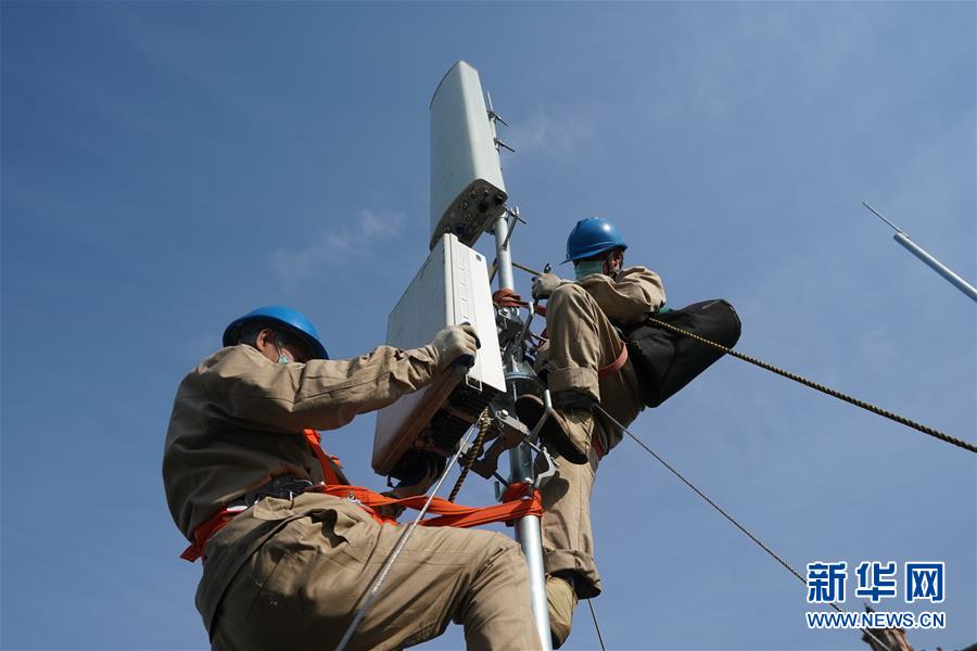 4月25日,在南京220千伏城南河變電站屋頂,工人在架設(shè)5G設(shè)備。當(dāng)日,三大通信運營商的2座5G、3座4G基站建設(shè)工作在南京220千伏城南河變電站屋頂有序展開。在變電站內(nèi)建設(shè)基站可有效利用電網(wǎng)資源,縮短建設(shè)周期,節(jié)約建設(shè)成本。新華社記者季春鵬攝
