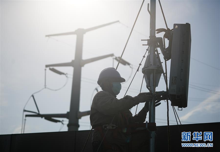 4月25日,在南京220千伏城南河變電站屋頂,工人在架設(shè)5G設(shè)備。當(dāng)日,三大通信運(yùn)營(yíng)商的2座5G、3座4G基站建設(shè)工作在南京220千伏城南河變電站屋頂有序展開。在變電站內(nèi)建設(shè)基站可有效利用電網(wǎng)資源,縮短建設(shè)周期,節(jié)約建設(shè)成本。新華社記者季春鵬攝