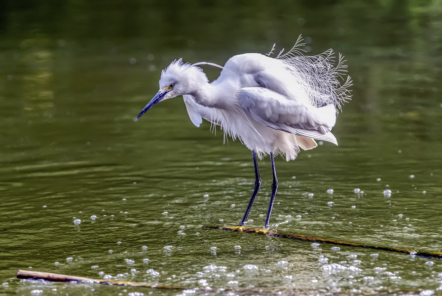 4月15日,攝于南山區(qū)華僑城天鵝堡附近。這是深圳拍鷺鳥的其中一個(gè)好去處。一只白鷺站在水面上。徐捷攝