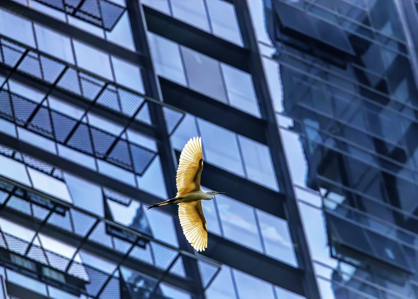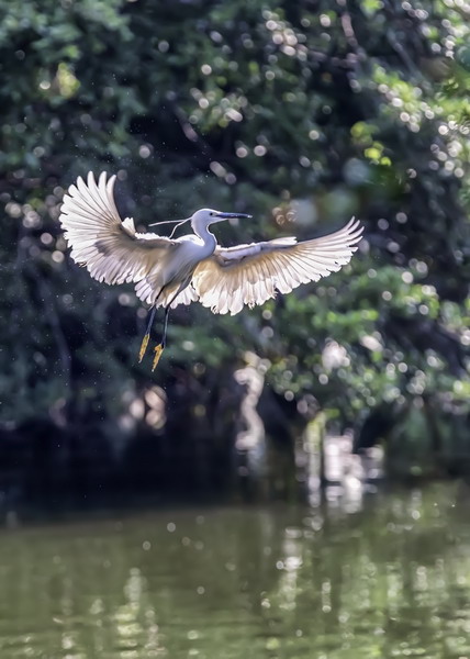 4月15日,攝于南山區(qū)華僑城天鵝堡附近。這是深圳拍鷺鳥的其中一個(gè)好去處。白鷺飛行時(shí)頭往回縮至肩背處,頸向下曲成袋狀,兩腳向后伸直,遠(yuǎn)遠(yuǎn)突出于尾后,兩翅緩慢地鼓動飛翔。徐捷攝