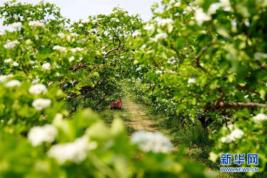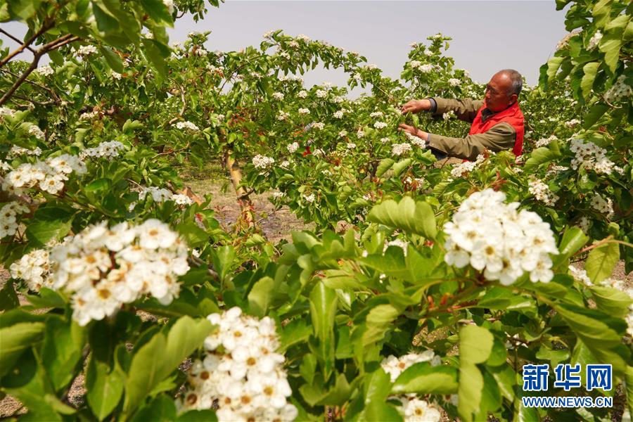 4月26日,農(nóng)民在河北省清河縣馬屯紅果種植專業(yè)合作社的山楂種植區(qū)內(nèi)忙碌。4月下旬以來,河北省清河縣2萬余畝山楂樹競相開花,成為一道亮麗的風景線。清河縣年產(chǎn)山楂7.5萬余噸,山楂種植已成為當?shù)剞r(nóng)民的重要增收途徑。新華社記者牟宇攝