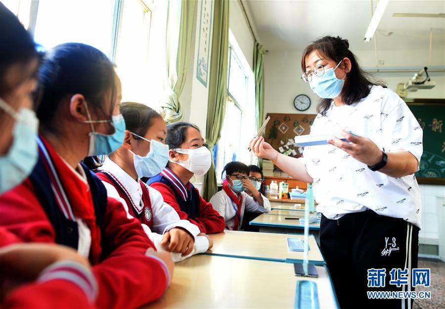 4月30日,諸暨市暨陽小學五年級4班班主任宣明霞在主題班會上向?qū)W生講解家庭用餐使用公筷公勺的重要性。當日,浙江省諸暨市暨陽小學五年級4班開展“公筷公勺新家風”主題班會活動,通過海報設(shè)計、情景劇表演等強化孩子們使用公筷公勺的意識,倡導文明用餐。新華社記者 韓傳號 攝