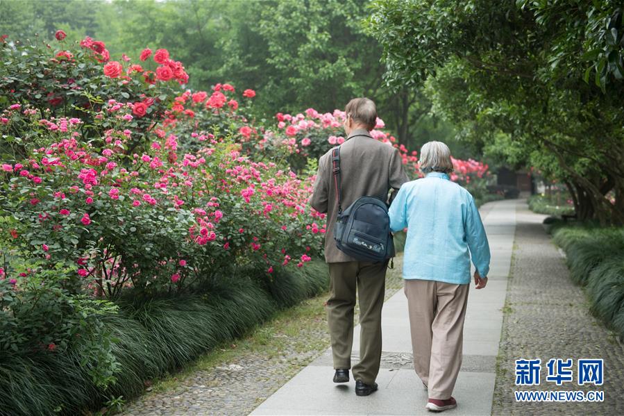 5月5日,游客在西湖畔的杭州花圃觀看月季花展?!拔逡弧逼陂g,第八屆杭州西湖月季花精品展在杭州西子湖畔舉行,展出國內(nèi)外700余個月季品種。新華社記者翁忻旸攝