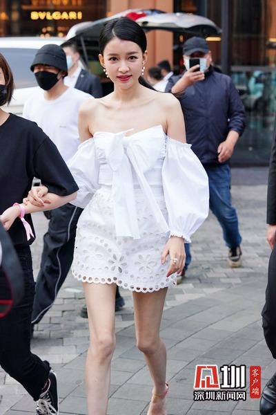 2020年5月7日,上海,孫怡出席品牌活動。她扎低馬尾,穿白色抹胸衣,又美又仙身材實力抗打。