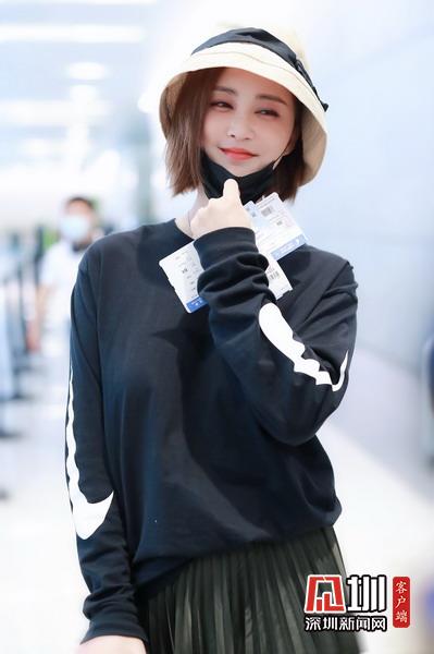 2020年5月14日,上海,張歆藝現(xiàn)身機(jī)場(chǎng)。她頭戴遮陽帽,口罩遮面,穿著黑色長(zhǎng)袖T恤搭配百褶長(zhǎng)裙,自提行李箱現(xiàn)身機(jī)場(chǎng),獲粉絲送機(jī),揮手道別。
