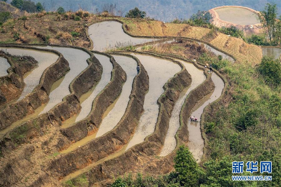 村民在地里插秧(3月26日攝)。新華社記者江文耀攝