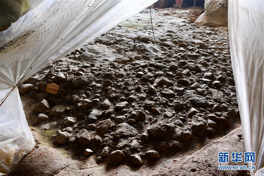 這是萬壽巖遺址船帆洞內人工石鋪地面(4月9日攝)。新華社記者姜克紅攝