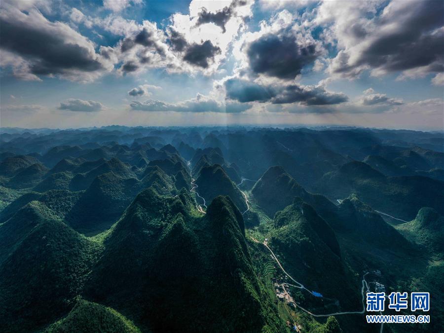 這是大化瑤族自治縣七百弄鄉(xiāng)風(fēng)光(5月14日攝,無人機照片)。新華社記者曹祎銘攝