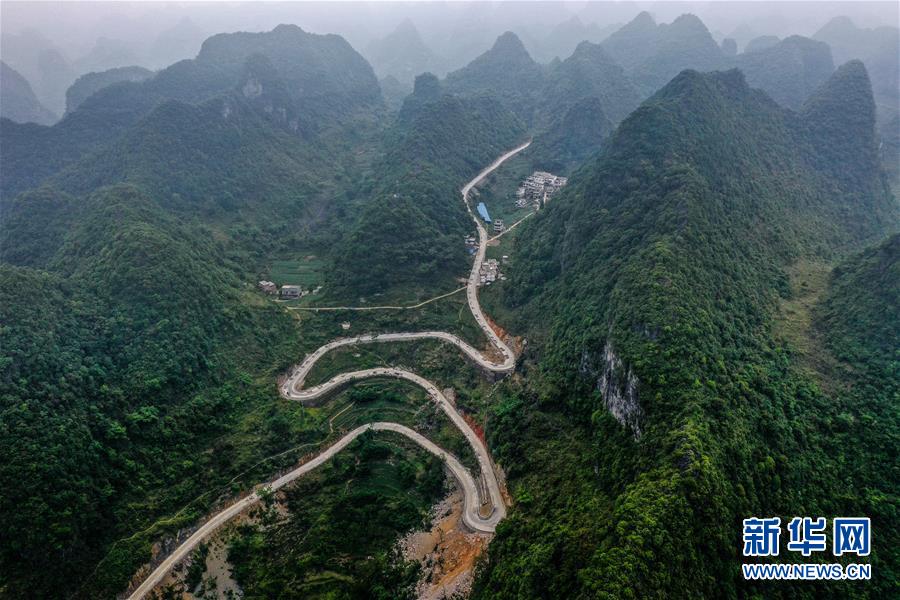 這是通向大化瑤族自治縣七百弄鄉(xiāng)弄平村的山路(5月15日攝,無人機照片)。新華社記者曹祎銘攝