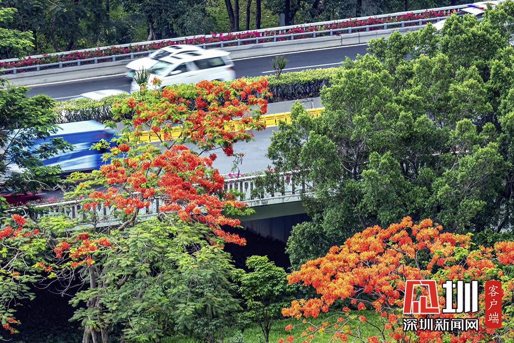 近日,深圳的鳳凰花進入花期。TCL科技園內,隨處可見盛開的鳳凰花。徐捷攝