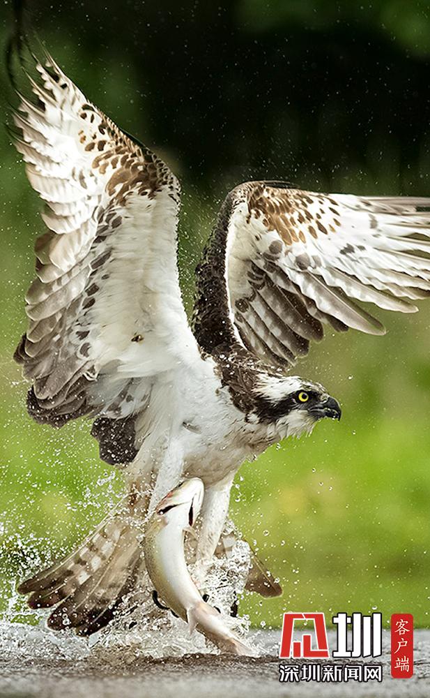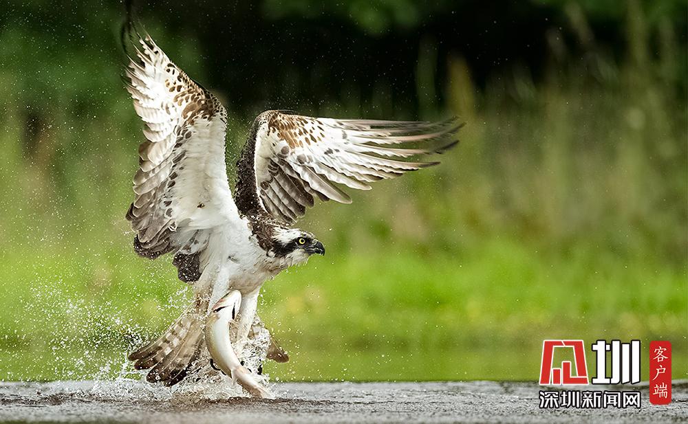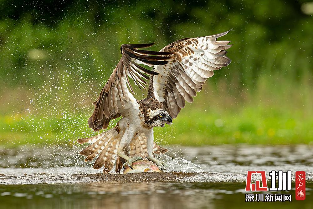 2020年5月28日報道(具體拍攝時間不詳),54歲的Gladys Klip來自荷蘭,是一名銀行助理,他在蘇格蘭高地拍攝到魚鷹捕魚的精彩照片。畫面中,魚鷹快速俯沖而下,掠過水面,鷹爪隨即從水中成功抓起一條魚兒,濺起水花,整個過程精彩詮釋快準(zhǔn)狠。Gladys Klip稱他在早晨5點的時候已經(jīng)在等候拍攝。