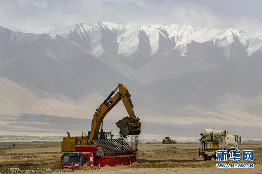新疆塔什庫(kù)爾干機(jī)場(chǎng)施工現(xiàn)場(chǎng)(6月3日攝)。新華社記者胡虎虎攝。