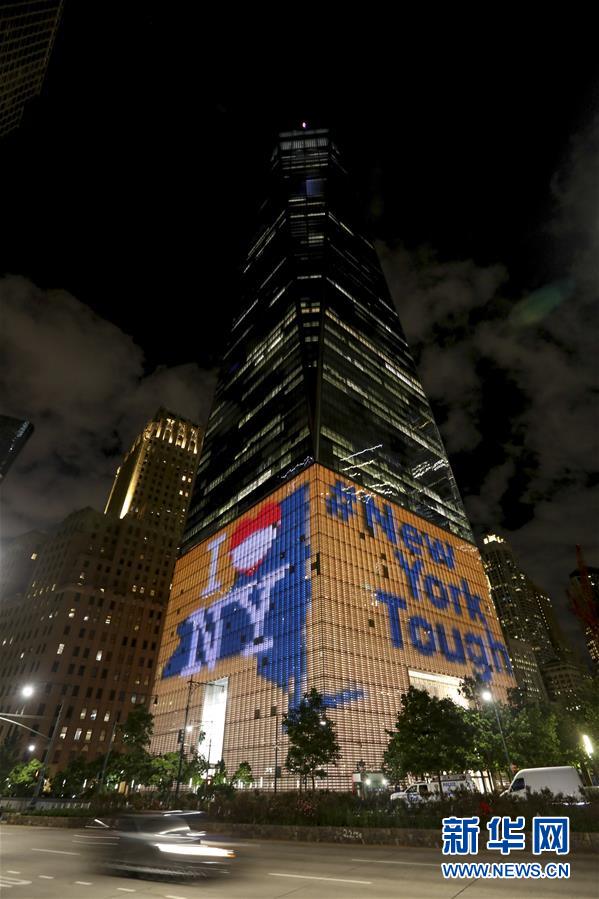 6月7日,美國(guó)紐約世貿(mào)中心一號(hào)樓外墻呈現(xiàn)出“紐約堅(jiān)強(qiáng)”字樣。新華社記者王迎攝