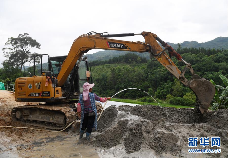 6月17日,工人在百坭村建設(shè)擋土墻。新華社記者 陸波岸 攝