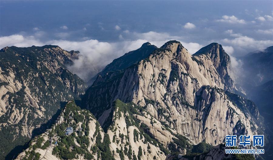 6月18日拍攝的華山北峰(無(wú)人機(jī)照片)。當(dāng)日,西岳華山經(jīng)歷連續(xù)三天暴雨后,迎來(lái)燦爛的陽(yáng)光。新華社記者 陶明 攝
