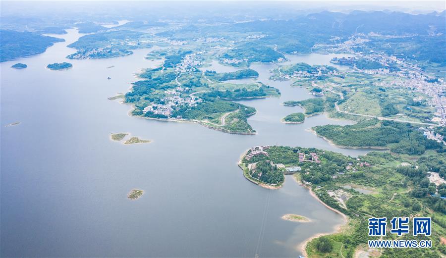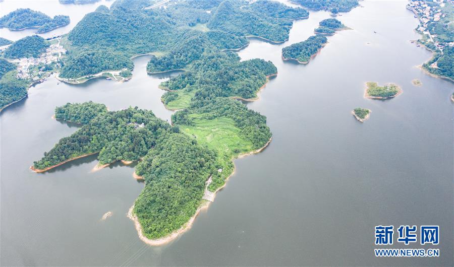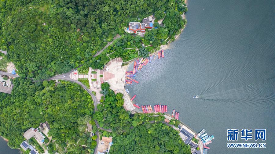 6月21日拍攝的紅楓湖景區(qū)風光(無人機照片)。夏至?xí)r節(jié),貴州省清鎮(zhèn)市紅楓湖景區(qū)草木蒼翠,秀麗的湖光山色吸引不少游客前來游玩。新華社記者陶亮攝