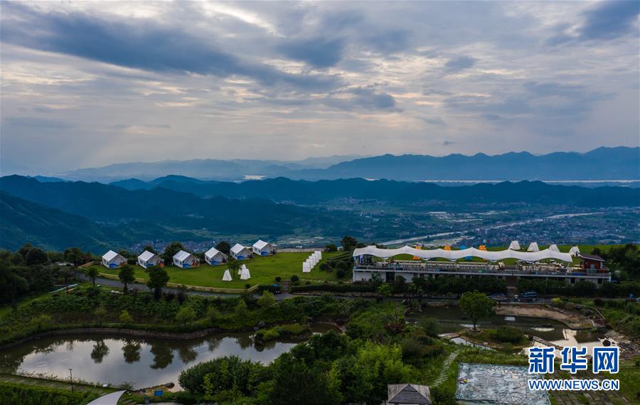 空中俯瞰杭州市富陽區(qū)常安鎮(zhèn)永安山頂?shù)膸づ窬频辏?月27日攝,無人機照片)。近期,浙江省杭州市富陽區(qū)場口鎮(zhèn)、常安鎮(zhèn)和湖源鄉(xiāng)組團開啟了一場夏季“綠水青山嘉年華”。這幾個壺源溪流域鄉(xiāng)鎮(zhèn)整合生態(tài)旅游資源,組團開發(fā)山村旅游項目,游客可以參與壺源溪水上游樂、露營永安山頂、特色農(nóng)產(chǎn)品集市和瓜果節(jié)等特色活動。新華社記者徐昱攝