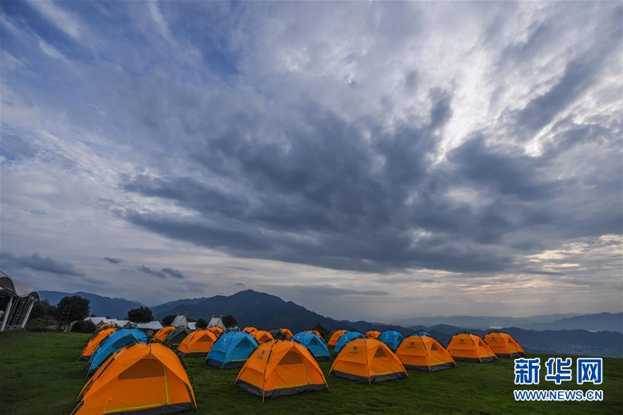 6月27日在杭州市富陽區(qū)常安鎮(zhèn)永安山頂拍攝的帳篷酒店。近期,浙江省杭州市富陽區(qū)場口鎮(zhèn)、常安鎮(zhèn)和湖源鄉(xiāng)組團開啟了一場夏季“綠水青山嘉年華”。這幾個壺源溪流域鄉(xiāng)鎮(zhèn)整合生態(tài)旅游資源,組團開發(fā)山村旅游項目,游客可以參與壺源溪水上游樂、露營永安山頂、特色農(nóng)產(chǎn)品集市和瓜果節(jié)等特色活動。新華社記者徐昱攝