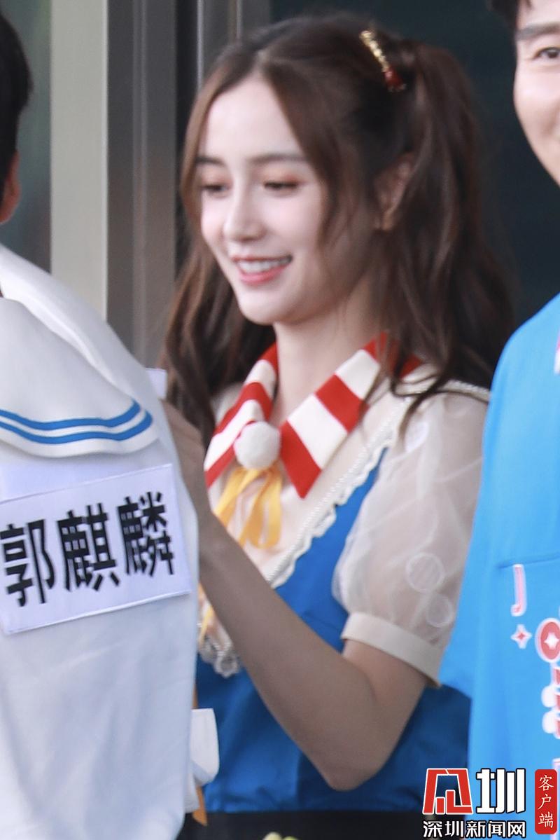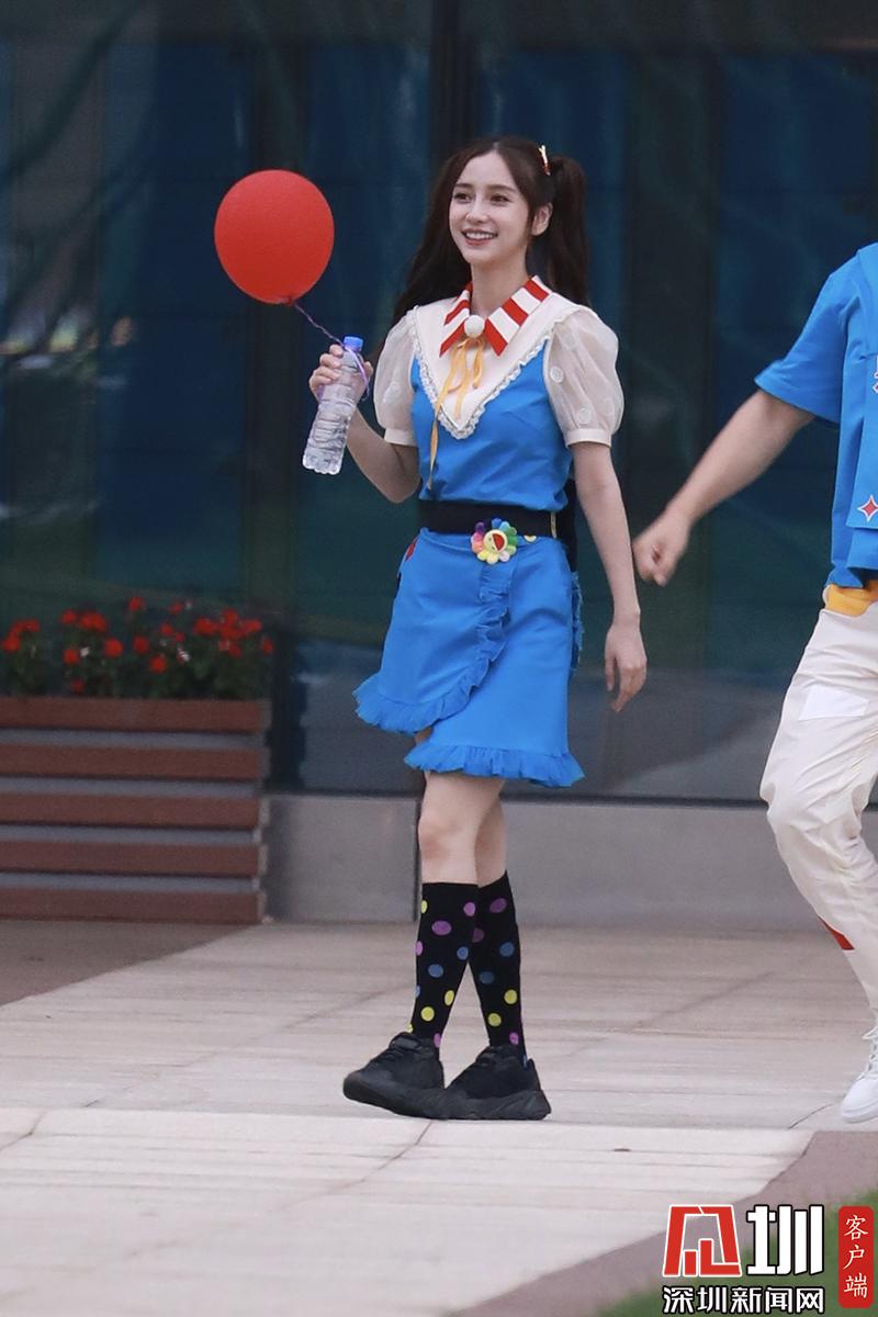 楊穎(angelababy)穿藍色背帶裙扎雙馬尾清新可愛
