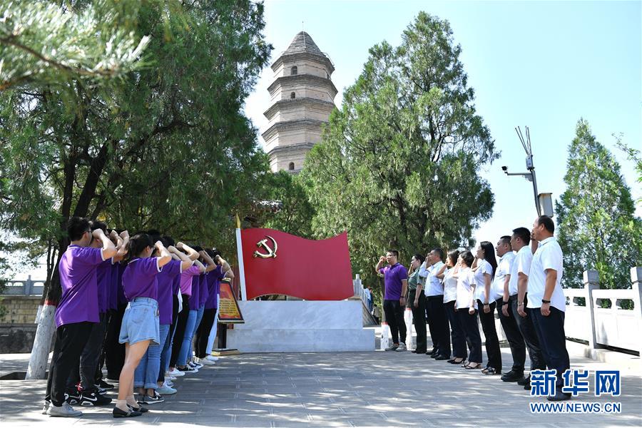 6月29日,黨員干部在延安市寶塔山重溫入黨誓詞。臨近“七一”,革命圣地延安的黨員干部紛紛來到紅色景區(qū),舉行主題黨課、現(xiàn)場教學(xué)、重溫入黨誓詞等活動(dòng)。新華社記者張博文攝