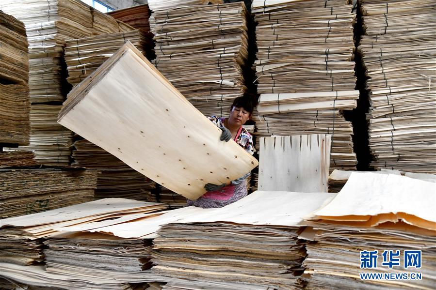 6月30日,在費縣坤林木業(yè)有限公司,工人在整理板材原料。地處沂蒙革命老區(qū)的山東省臨沂市費縣探沂鎮(zhèn)近年來圍繞鄉(xiāng)村振興戰(zhàn)略,謀劃“一鎮(zhèn)一業(yè)”,以木業(yè)產業(yè)為抓手,積極引導全鎮(zhèn)3136家木業(yè)企業(yè)進行園區(qū)化、集約化、智能化發(fā)展,成為遠近聞名的“木業(yè)特色小鎮(zhèn)”。2019年,該鎮(zhèn)規(guī)模以上工業(yè)總產值187億元,農民人均純收入2萬元左右,木業(yè)產業(yè)有力助推當?shù)氐泥l(xiāng)村振興。新華社記者郭緒雷攝