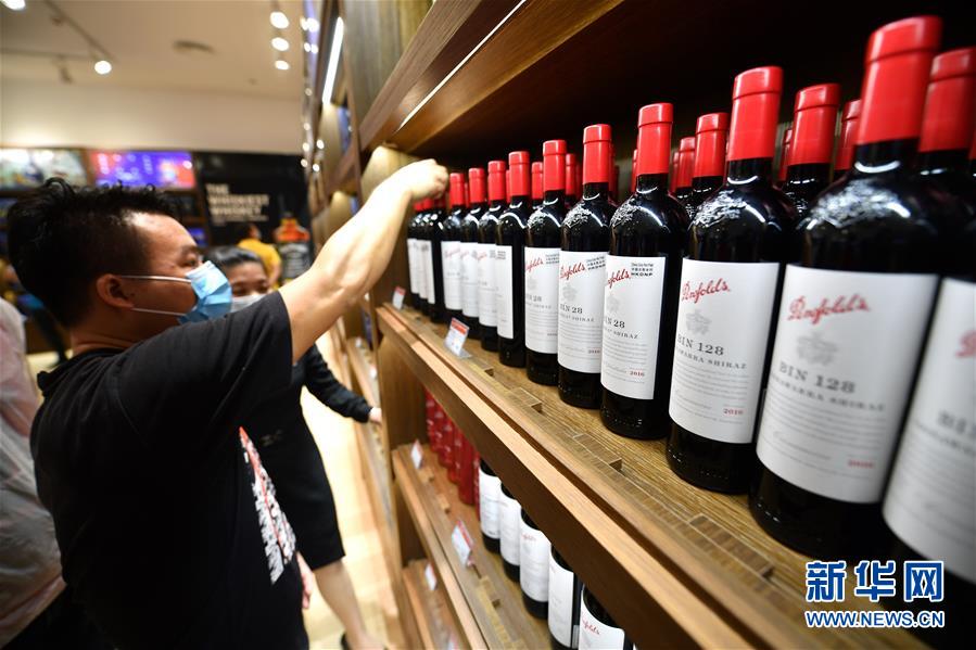 7月1日,顧客在??谌赵聫V場(chǎng)免稅店選購(gòu)酒類(lèi)商品。當(dāng)日,海南開(kāi)始實(shí)施調(diào)整后的離島免稅購(gòu)物政策。海南離島旅客每年每人免稅購(gòu)物額度提高至10萬(wàn)元,電子消費(fèi)產(chǎn)品等7類(lèi)新增商品開(kāi)售。新華社記者郭程攝