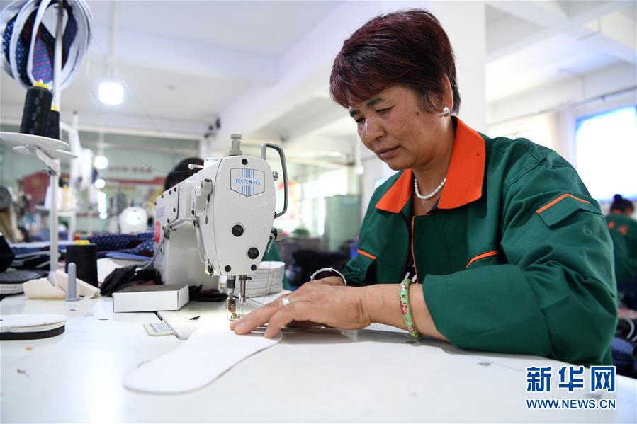 7月2日,臨夏縣百利布鞋加工農(nóng)民專業(yè)合作社員工在加工布鞋。甘肅省臨夏回族自治州臨夏縣將布鞋加工定為重點(diǎn)扶持發(fā)展的產(chǎn)業(yè),采用“政府+公司+貧困戶”的產(chǎn)業(yè)扶貧模式,由政府主導(dǎo)、企業(yè)出資,在貧困村建設(shè)“扶貧車間”,吸納貧困群眾從事布鞋加工產(chǎn)業(yè)增加收入。截至2019年底,當(dāng)?shù)夭夹庸て髽I(yè)和加工戶遍及近百個(gè)行政村,從業(yè)人員達(dá)到4000多人,累計(jì)生產(chǎn)布鞋600多萬雙,實(shí)現(xiàn)銷售收入2.32億元。新華社記者范培珅攝