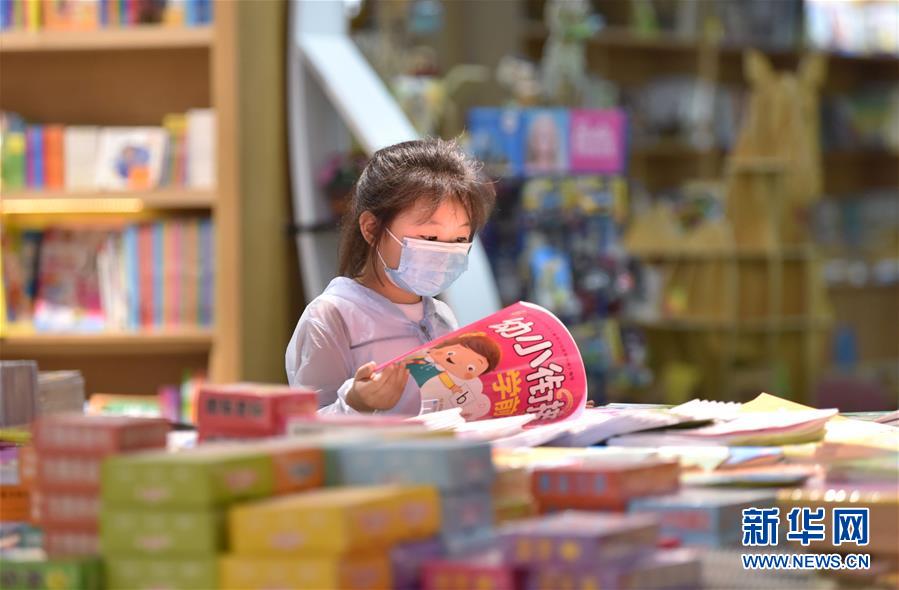 7月5日,一名小朋友在河北省定州市新華書店閱讀圖書。近日,河北省定州市新華書店在做好疫情防控的前提下,開展“樂享圖書嘉年華”系列活動,通過舉辦圖書聯(lián)展、親子閱讀、少兒讀物推介等活動,吸引少年兒童走進(jìn)圖書館,感受書香陪伴的夏天。新華社記者朱旭東攝