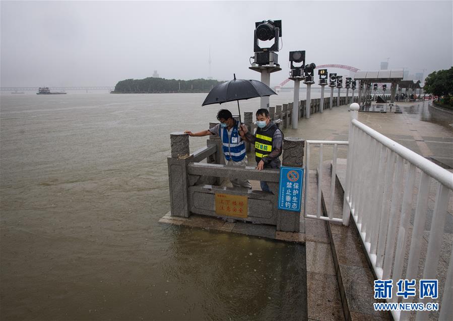 7月6日,工作人員在武漢龍王廟觀察水情。記者6日從武漢市防汛抗旱指揮部辦公室獲悉,5日以來,武漢遭暴雨襲擊,全市多處路段漬水。至6日4時,長江漢口站超設(shè)防水位1.79米,漢江新溝站超警戒水位0.01米。鑒于當前水雨汛情和漬澇情況,武漢市從6日5時起,將排澇應(yīng)急響應(yīng)級別提升至Ⅱ級;從6時30分起,將防汛應(yīng)急響應(yīng)級別提升至Ⅱ級。新華社記者肖藝九攝