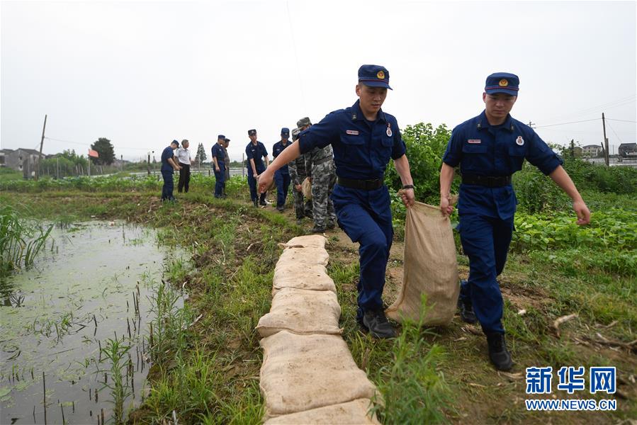 7月7日,吳興區(qū)消防救援大隊(duì)隊(duì)員在織里鎮(zhèn)曹家籪村幫助村民加固防洪堤。近日,位于浙江北部的湖州市遭遇多輪降雨,東部平原河網(wǎng)普遍超警戒水位,水庫山塘高位運(yùn)行。7月5日12時(shí)30分,湖州市人民政府防汛防旱指揮部將防汛應(yīng)急響應(yīng)提升至Ⅲ級(jí),要求各地密切監(jiān)測(cè)汛情,切實(shí)做好各項(xiàng)防范工作,確保安全度汛。新華社記者黃宗治攝