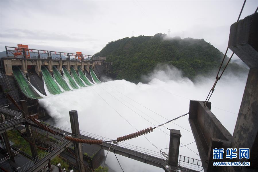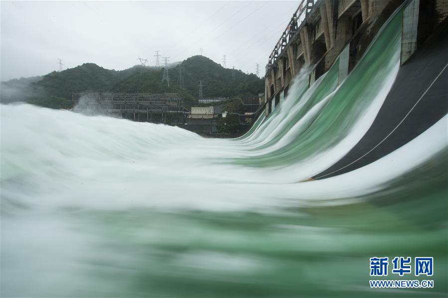 7月7日下午開啟7孔泄洪的新安江水庫(kù)。受持續(xù)降水影響,浙江新安江水庫(kù)水位持續(xù)快速上升。繼當(dāng)日10時(shí)開啟3孔、12時(shí)開啟5孔泄洪后,新安江水庫(kù)于16時(shí)增加到7孔泄洪。新安江水庫(kù)是華東地區(qū)最大的水庫(kù),在錢塘江流域的防洪度汛中起到關(guān)鍵作用。新華社記者翁忻旸攝