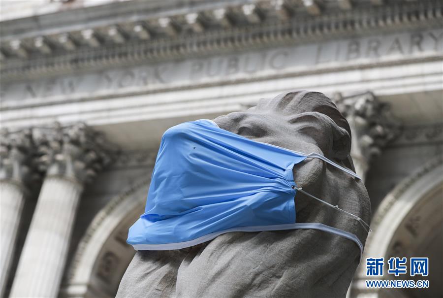 這是7月8日在美國紐約公共圖書館前拍攝的“戴”口罩的石獅子。美國約翰斯·霍普金斯大學8日發(fā)布的新冠疫情最新統(tǒng)計數(shù)據(jù)顯示,美國累計確診病例超過300萬例。數(shù)據(jù)顯示,截至美國東部時間8日11時34分(北京時間23時34分),美國累計確診病例3016515例,累計死亡病例131594例。新華社記者王迎攝