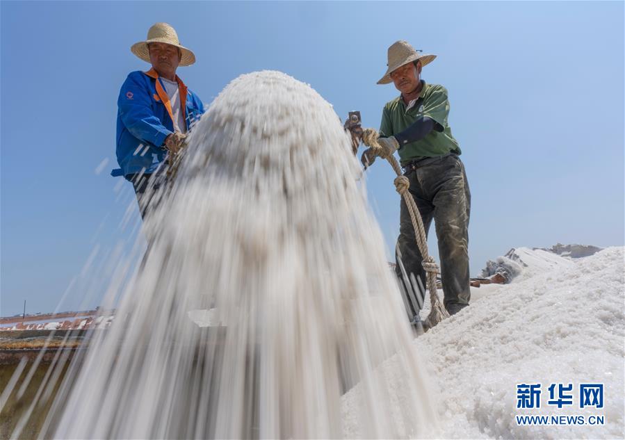 7月9日,唐山市曹妃甸區(qū)南堡鹽場的工人將收獲的春鹽裝船。在我國長蘆鹽區(qū)海鹽生產(chǎn)基地之一的河北省唐山市曹妃甸區(qū)南堡鹽場,一年一度的春鹽收獲工作即將結(jié)束,今年南堡鹽場的春鹽產(chǎn)量預(yù)計(jì)可達(dá)72萬噸。新華社記者楊世堯攝
