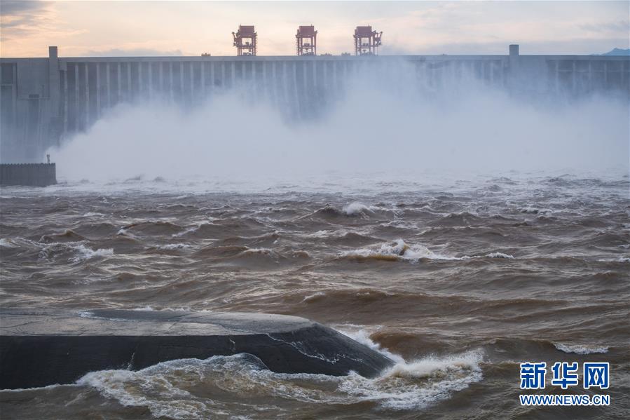 7月19日,三峽樞紐開啟泄洪深孔泄洪。19日20時(shí),三峽水庫(kù)入庫(kù)流量4.6萬(wàn)立方米/秒,較本輪洪水的峰值6.1萬(wàn)立方米/秒下降了1.5萬(wàn)立方米/秒?!伴L(zhǎng)江2020年第2號(hào)洪水”平穩(wěn)通過(guò)三峽大壩。新華社記者肖藝九攝