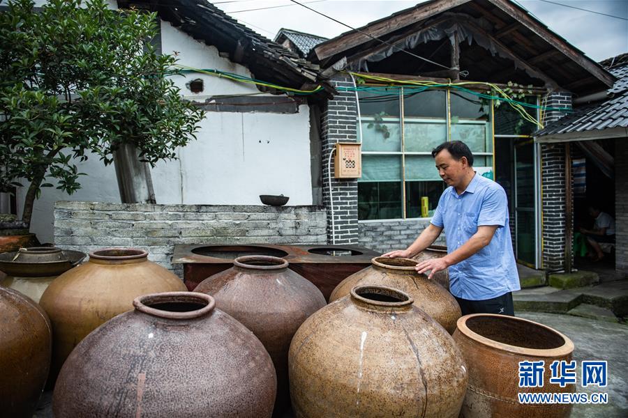 母先才在查看客戶訂制的酒缸(6月16日攝)。新華社記者 陶亮 攝
